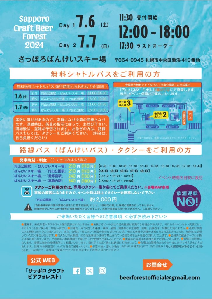 - 円山バスターミナルからの無料送迎バスあり(7/6土と7/7日)